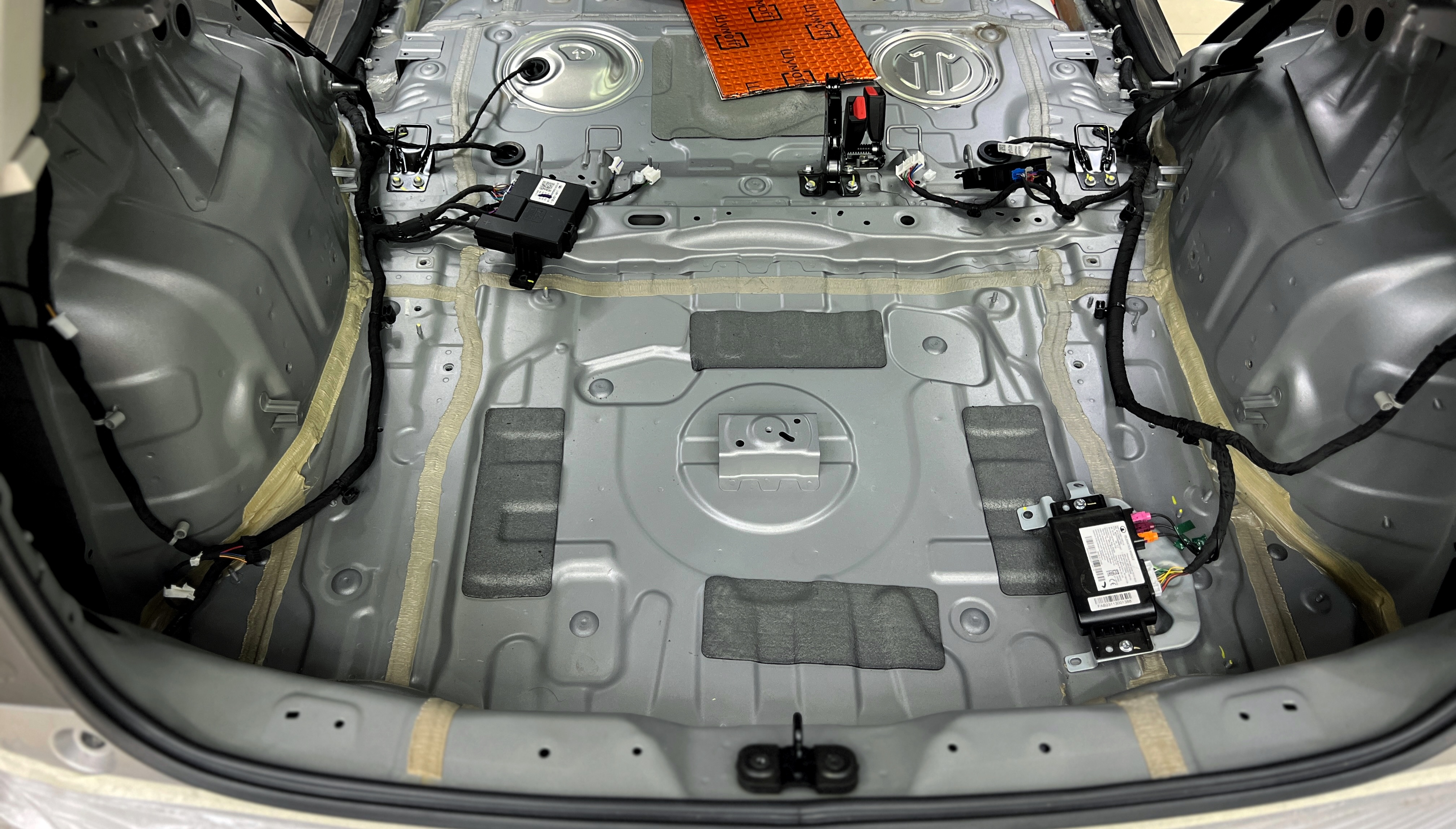 - все дно багажника и крылья оклеиваем мене толстым и тяжелым Шумофф М3.