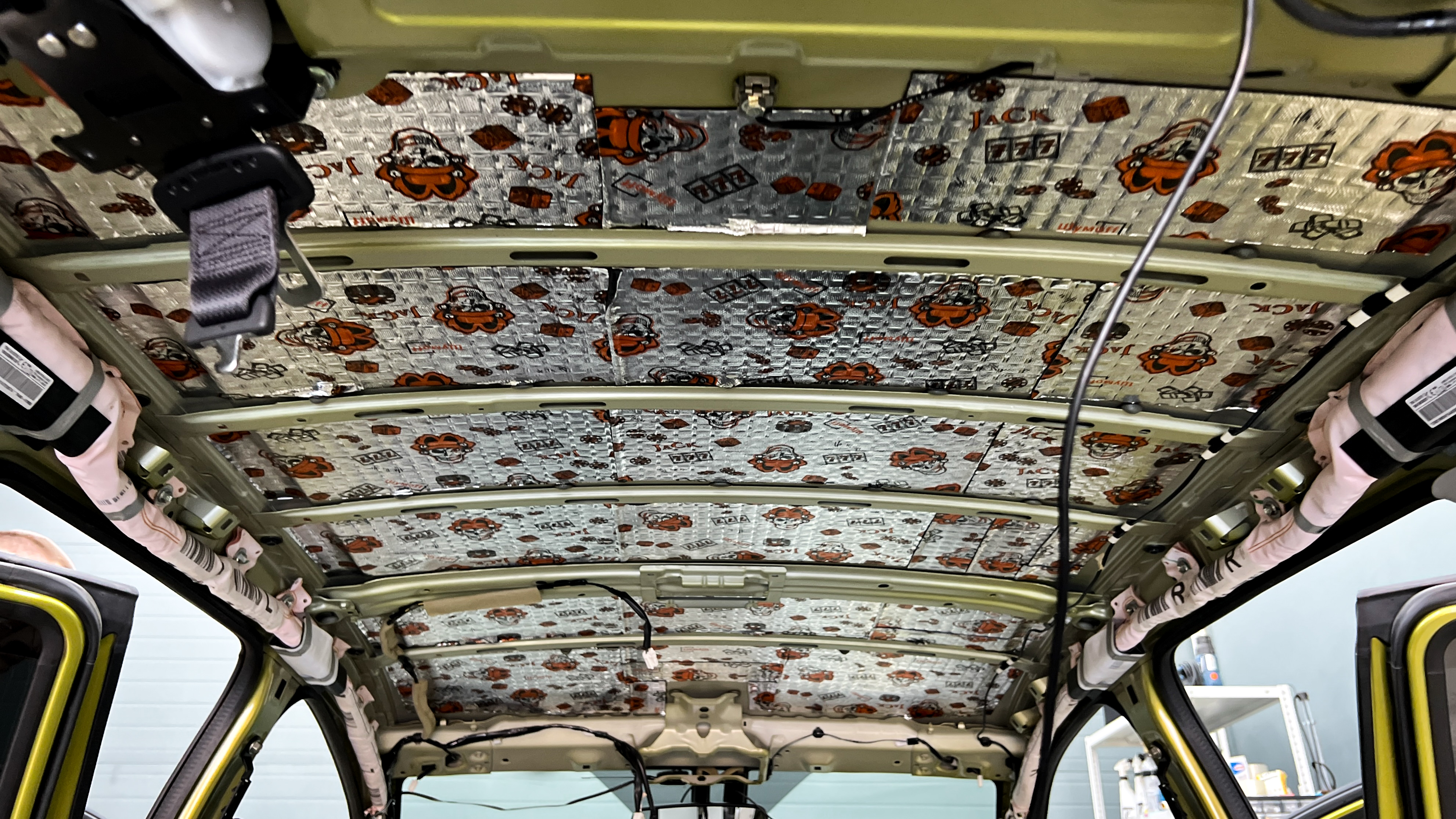 Вторым слоем поверх виброизоляции клеим на крышу современный и очень эффективный шумопоглотитель Шумофф Absorber А15.