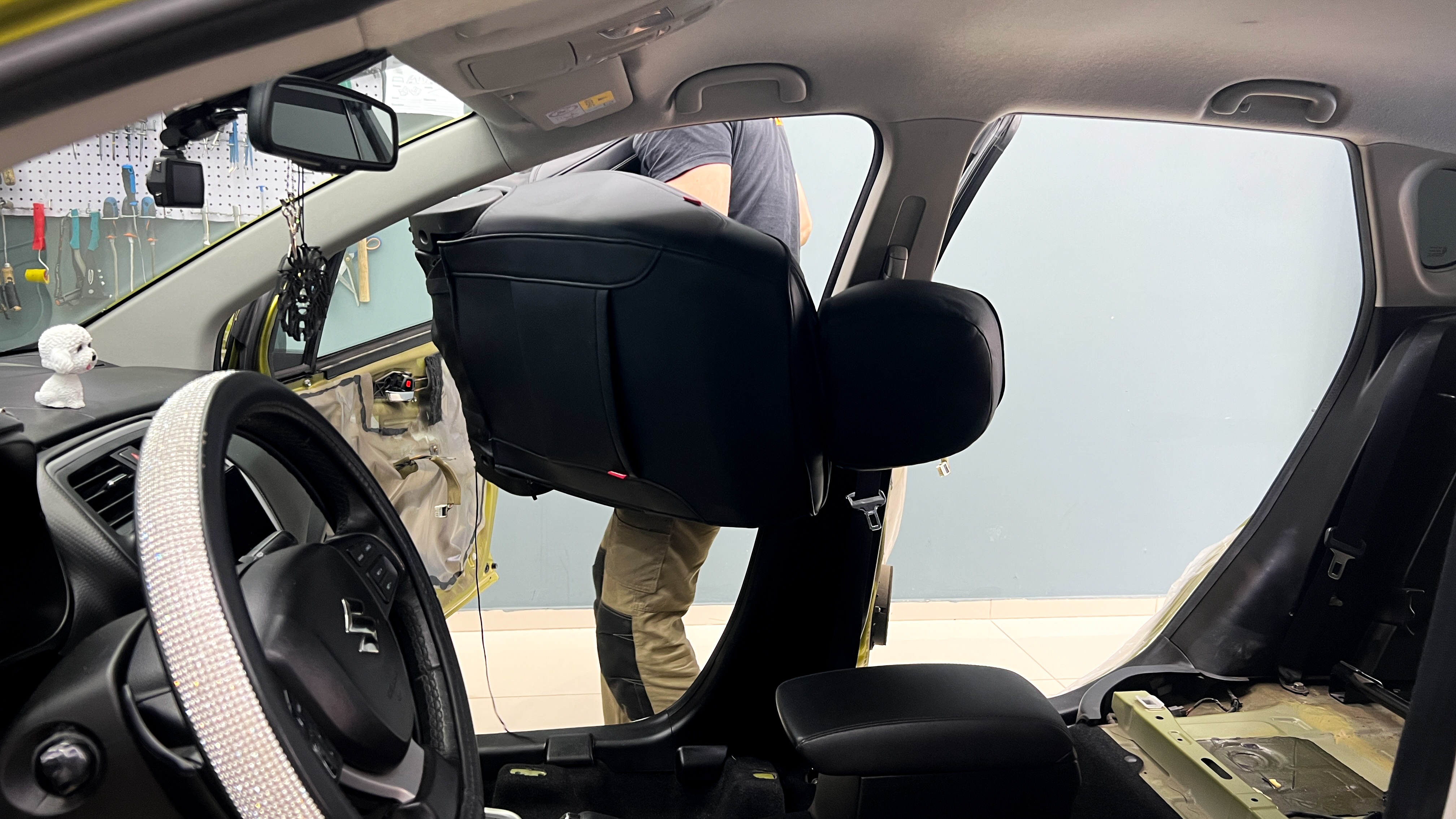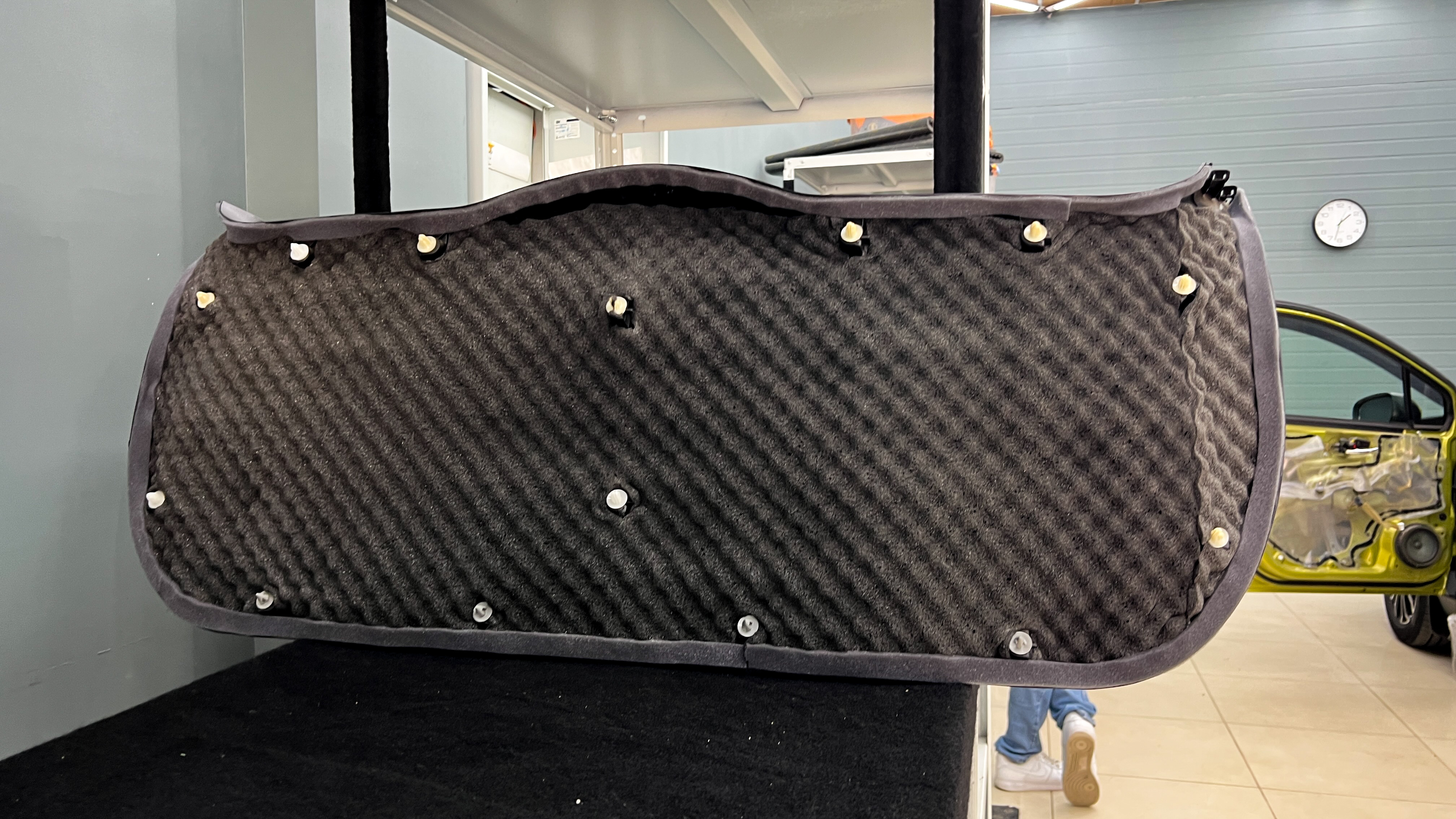 Внутренняя поверхность обивки оклеивается шумопоглотителем Flex А15.